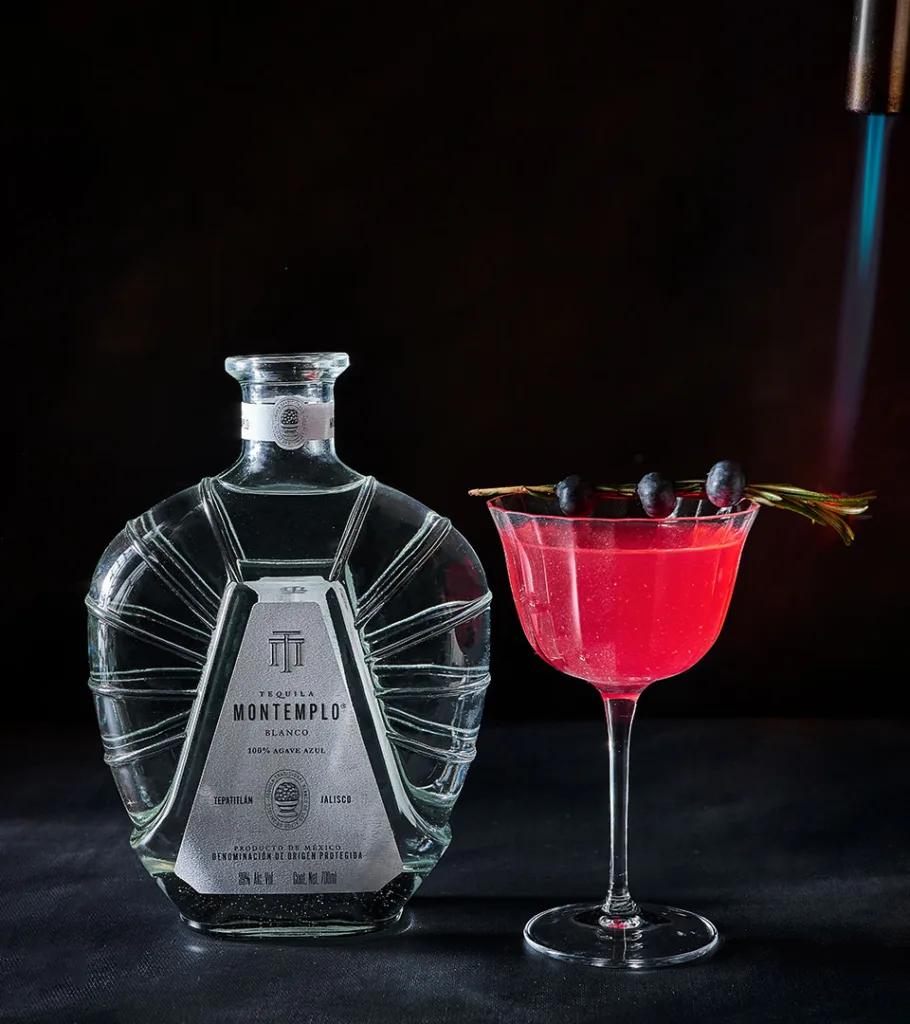 50 ml Montemplo Blanco 15 ml Cointreau (Licor de naranja) 30 ml Jugo de arándano 30 ml Jugo de lima fresco 10 ml Jarabe natural